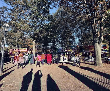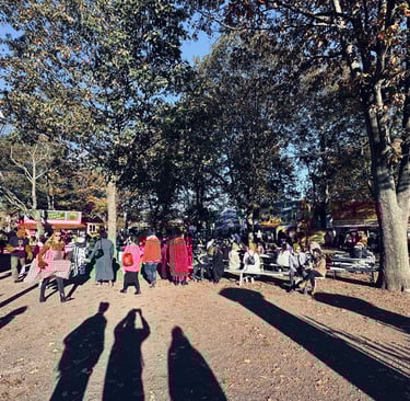 The market featured a dining area in the northwest corner with many food trucks. New England delicacies like clam chowder, lobster rolls, Italian sausages, and fried dough (what we Mid-Westerners call “elephant ears”) were all available, along with dozens of picnic tables. In the center of the common was a bandstand hosting several musicians. Around the perimeter of the lawn surrounding the bandstand were the artists’ booths, with locals peddling their wares to tourists. There was an incredible assortment of festive goods for purchase: jewelry, knit wares, candles, stickers, thrifted shirts, and records were just some of the items we saw for sale. There were also volunteers from the town handing out maps and answering visitors' questions.