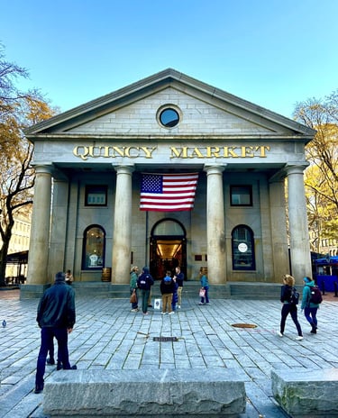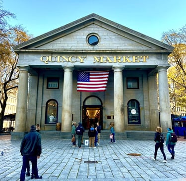 In addition to the City Hall, the Government Center has other public amenities. A large plaza in front of the City Hall can be utilized as a meeting space or event site. A large glass head house leads to the transit station of the same name on the Green and Blue lines. There is also a park and playground on the North side of the hall where keen-eyed visitors may notice the infamous “cop slide” from 2023 internet fame (it has a listing on Maps now). A few more historic spots are behind City Hall, along Constitution Street. There’s the Boston Holocaust Memorial, comprised of six glass towers, and the (Ye Olde) Union Oyster House, the oldest continuously operating restaurant in the United States, first opening in 1826. And there’s Faneuil Hall.