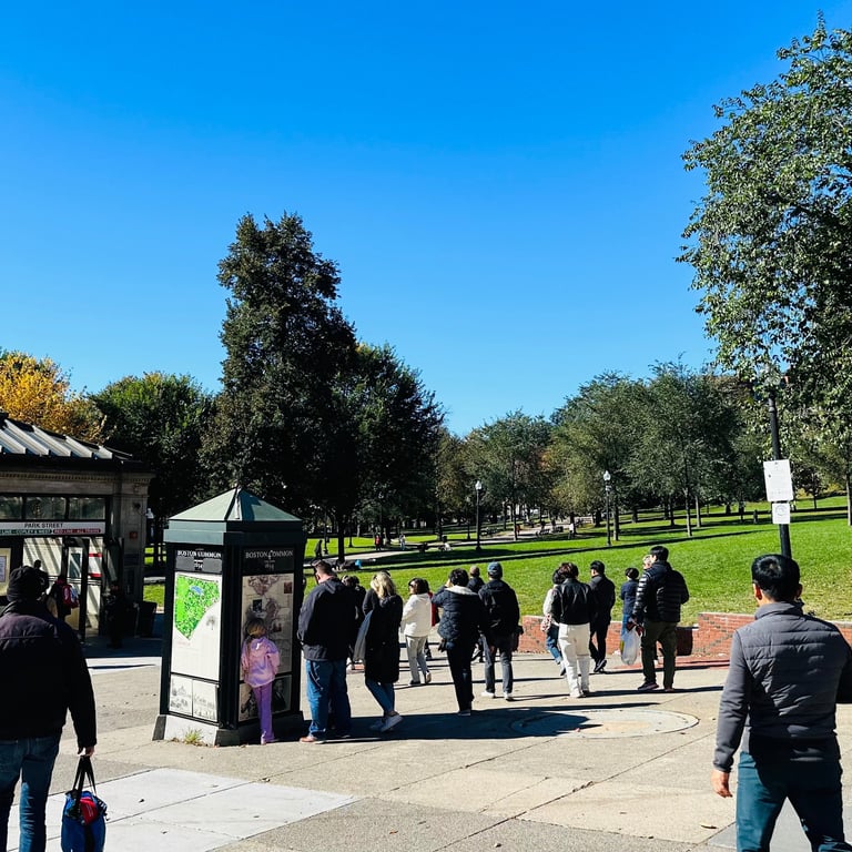 Tapping in for the Red Line and boarding an inbound train, we rode two stations up to Park Street. I was shocked when my train arrived, as it looked like it had just rolled out of the 1980’s. My first trip was on the Series 1800 train introduced in 1993, but that would have fooled me. The seats were well-worn (although they at least seemed comfortable), the hand grips looked tired, and the entire train felt drab and needed refreshment. Wayfinding was not great, and announcements were quite muddled. Hopefully, this will be fixed with the new CRRC trainsets being introduced, though my experience with the new cars from CRRC in Chicago was less than stellar. What was stellar, however, was surfacing from the Red Line station at Park Street and seeing plenty of historic sites, including Boston Common.
