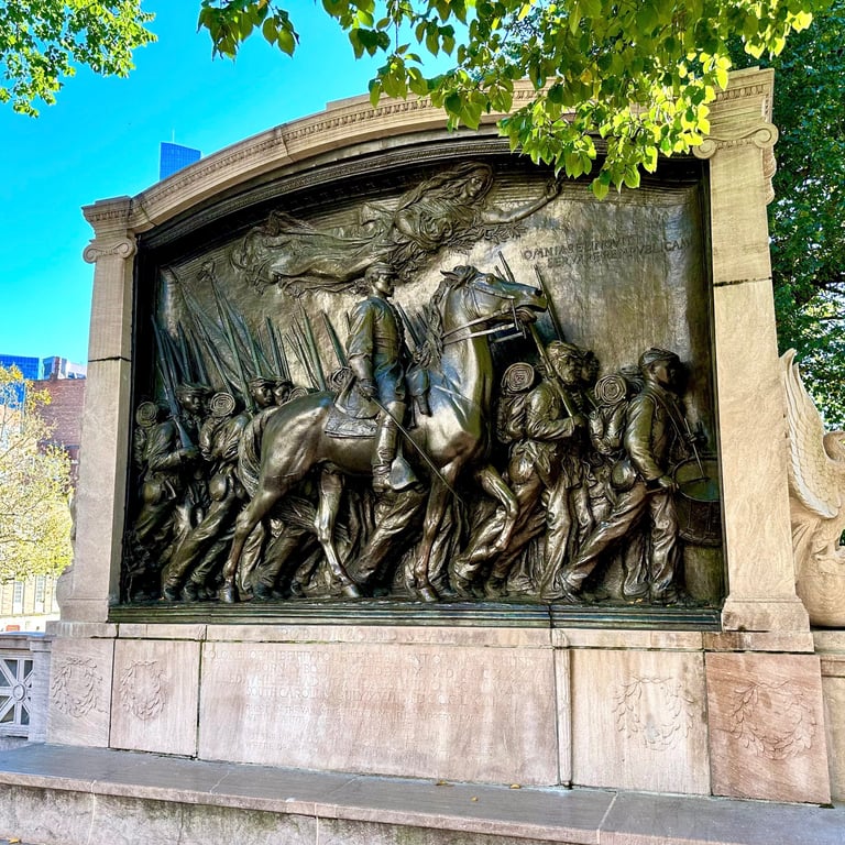 Emerging from the dark underground of the T into the brilliant blue-skied day in New England autumn was only made better by doing so across the street from Boston Common. Founded in 1634, the Boston Common is the oldest city park in the United States and perhaps one of the oldest city parks in the world. This 20-hectare (50-acre) park hosts a variety of monuments, statues, and natural features, including the Frog Pond from Massachusetts’s official children’s book, Make Way for Ducklings. We briefly followed a trail leading to the Massachusetts State House, adjacent to the Common on the North side. The Robert Gould Shaw Memorial is also on the North side, a tribute to Shaw and the Black 54th Massachusetts Volunteer Infantry from the American Civil War. Finally, we came across what we sought in the Common: the Freedom Trail.