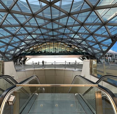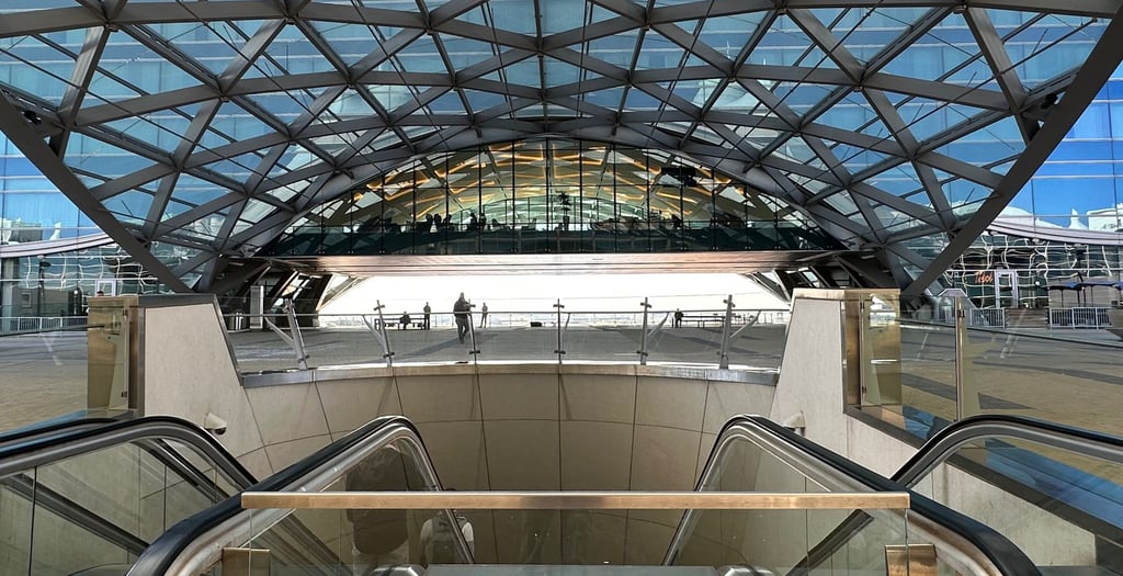 When stepping off the jet bridge into the airport, the first thing I noticed was the sheer scale of the airport. The terminal spaces reflect the airfield’s record-breaking status, with much of the newer terminal spaces feeling open and letting in plenty of natural light. Most of the airport feels modern, though some areas are noticeably worn, as well as several spots that were in the process of renovation. One unique thing about Denver is that the terminals are only connected by an underground people-mover system. While the trains are quite nice, and it does not seem to add much time to the journey due to the distance covered between terminal stops, it would be nice to have the option to walk between terminals like at Atlanta Hartsfield-Jackson. This problem is especially apparent when the system is undergoing maintenance or has a malfunction. After my short ride, which ended up being less than five minutes, I arrived at the main concourse and was able to follow signs towards the train station.