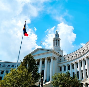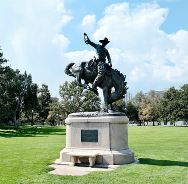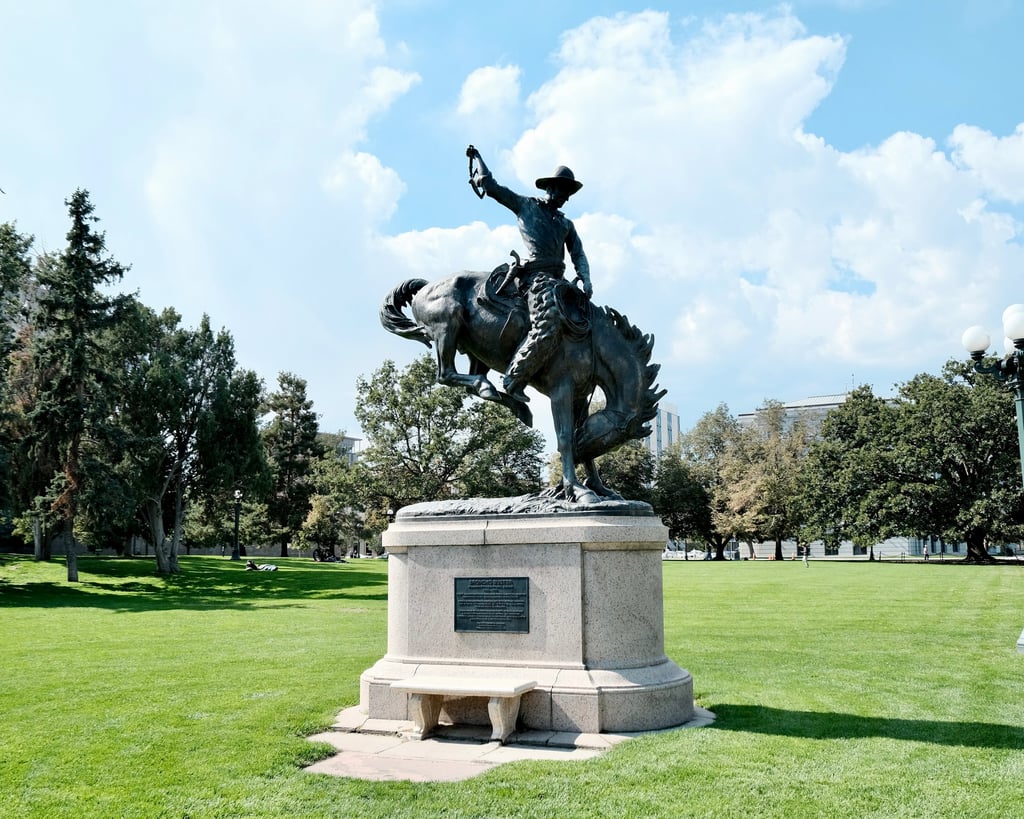 After the State Capital, I walked the lawn separating the two buildings, trying to soak up the warm late-summer mountain air. With the nice weather, there were lots of people out enjoying the day by reading on the lawns, taking their lunch on a park bench, or just strolling around the public space like I was. Along the route are several statues, plazas, and particulates, in addition to lots of benches and landscaped features. The street in front of the City-County Building has been pedestrianized and even painted with a nice mural, which I felt helped to connect the government building with the rest of the environment and create a more welcoming space overall.