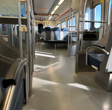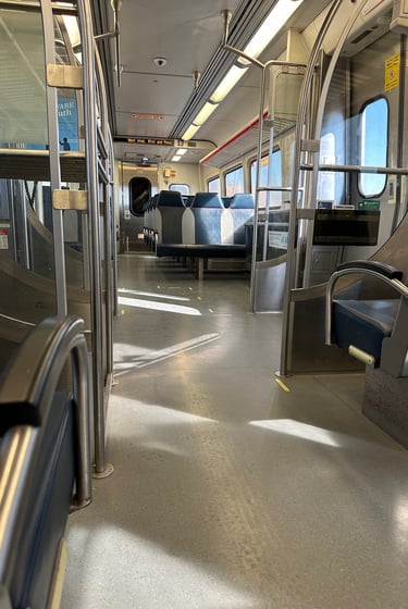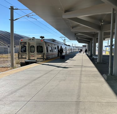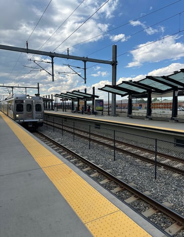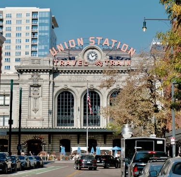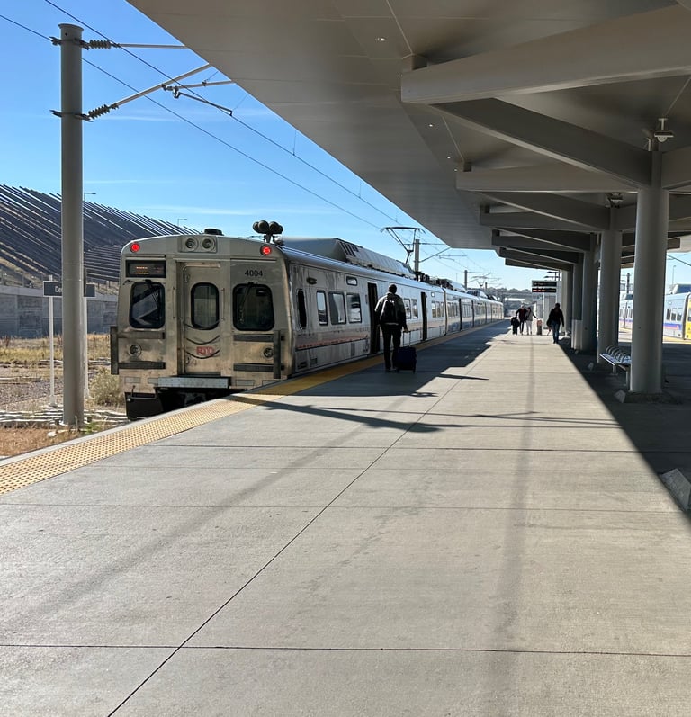 After about a five-minute wait, a train arrived, and I was able to board while finishing the 15-minute station sit. The trains for the A Line on the RTD are very nice Hyundai Rotem Silverliner V trainsets, which feel modern on the interior. Both trains I rode featured working digital wayfinding and luggage racks, a helpful amenity not always available on airport rail connections like Chicago's Blue Line or Phoenix's Valley Metro. The train I was on was very quiet, with few passengers, even though it seemed like the service was well-used overall, and the ride was incredibly comfortable with good AC, well-padded seats, and a smooth ride. Once en route, it took about 45 minutes to get from end to end. Stops are spaced fairly far apart, allowing for the trains to get to their top speeds. While I did not disembark on the first trip into town at any of the outlying stations, it seemed like all of them had ample parking lots and decent bus terminals for connections. At the end of the line, we pulled into Union Station, and I was able to start exploring Denver on foot.