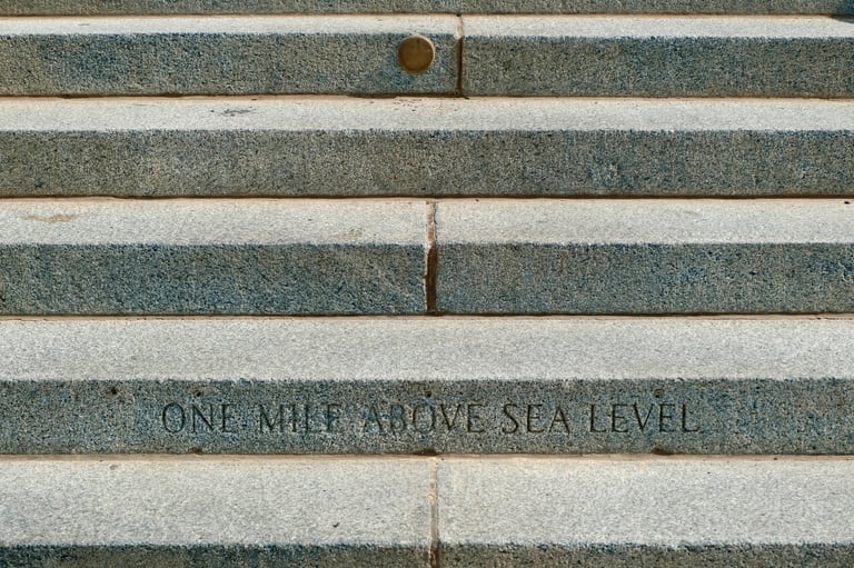 I got off the bus at Civic Center, the government complex in the heart of the city. The complex is set up with a large mall spread between the Colorado State Capital at the Eastern edge and the City-County Building at the Western edge. Both of the buildings were rather impressive and what one would typically expect from a state capital building or city hall in one of the nation's most important cities. At the State Capital, there was not a lot for me to see as I was not able to go into the building, though on the stairs up to the entrance was the Mile High Marker, a medallion engraved into the foundation of the building marking one mile above sea level and the origin of Denver's nickname.
