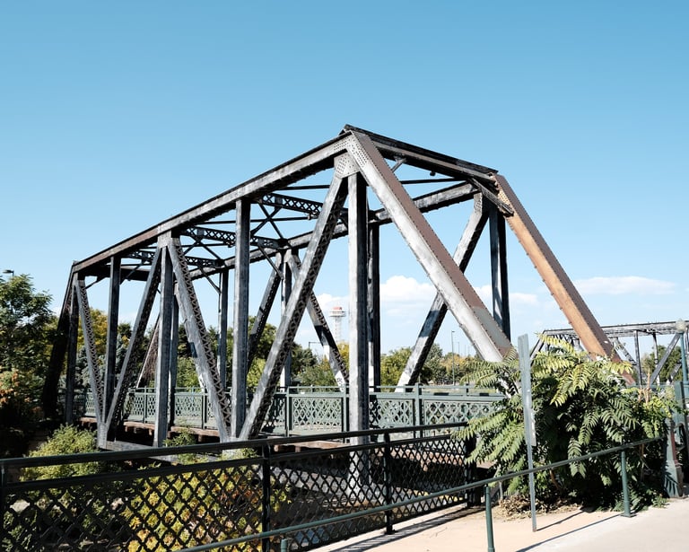 Around the edges of LoDo are some of the biggest attractions in Denver, such as Ball Arena (home to the Denver Nuggets and Denver Avalanche), Coors Park (home to the Colorado Rockies), and Elitch Gardens (home to funnel cake). At the neighborhood's Western side is Cherry Creek, with some pedestrianized iron bridges crossing the trickling water, as well as a trail that runs its length. I walked the trail for a while, seeing glimpses of Elitch Gardens along the way before getting rather hungry. Heading back to the center of the district, it was time for lunch.
