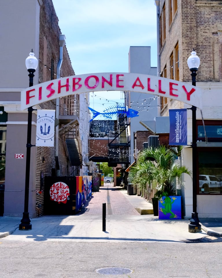 Once in downtown I went straight to the highest rated area on TripAdvisor for Gulfport, Fishbone Alley. While I didn’t do much research for this trip, I did at least take a peek at its page on TripAdvisor to see what was possible there, and this was the spot. I was pretty immediately underwhelmed. Fishbone Alley is, unsurprisingly, and alleyway, but that’s about it. Sure there are some nice touches like the decorative sign above the entry way, and there is lots of fun street art but there isn’t much to do or see here. At least during a Tuesday afternoon in April. This general sentiment can basically sum up my entire thoughts surrounding the downtown area; it’s smaller than one might expect without a lot of attractions jumping out at you compared to other cities like Chicago (an unfair comparison perhaps) or even Astoria, Oregon (a more fair comparison). This area was at least home to the highest rated restaurants in the city, and as I had gotten to the area around noon without having eaten anything else that day, I figured it was time to change that.