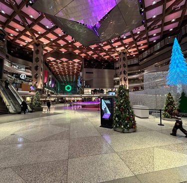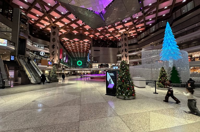 To get back into town we went down the hundreds of steps of Le Grand Escalier du Mont-Royal. Going down a staircase covered with snow and ice at night when there is very little lighting is not recommended generally, and I can understand why as it was a rather perilous descent. At the base, we were greeted by the campus of McGill University, one of the largest and most significant universities in Canada. Walking with the crowds of students finishing classes for the day we eventually reached Place des Arts, home to the Museum of Contemporary Art, and the Place Ville Marie mall.