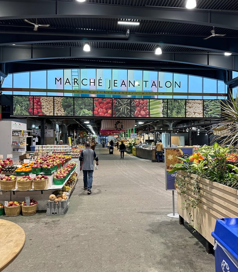 After waking up and checking out of the hostel the next morning, we departed for the Metro station in a city less snow-covered than the one we arrived in, but also significantly slushier. Overnight the snow had turned to rain, and although the temperature had risen slightly, it was still cold and damp, with a not insignificant amount of grey sludge in the roads and clogging the crosswalks. One area where Montréal did not impress was the snow removal, specifically along sidewalks and crosswalks. Each time my travel partner and I had to cross a road it was a puzzle to figure out how to get across without getting soaked from trodding through snowbanks as high as our hips from the street plows. A world-class city such as Montréal, especially one with a significant amount of its population who get around by walking and transit, should pay more mind to keeping sidewalks cleared for pedestrians. For all of our efforts, by the time we reached our destination, we were soggy, cold, and hungry again. Despite this, we welcomed the sight of the market.