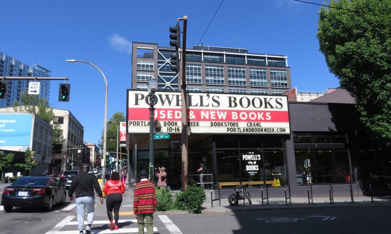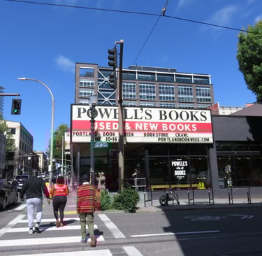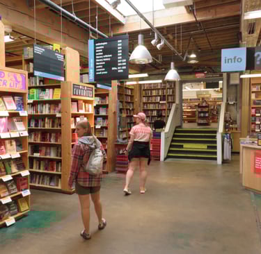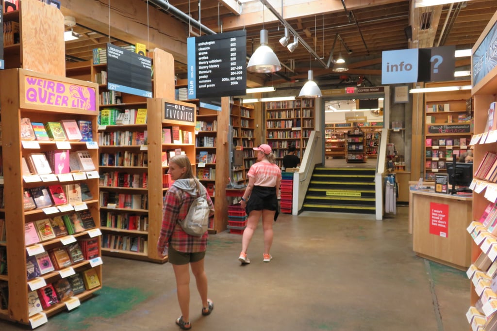 Ten blocks up from the Willamette, we reached another must-see item of the trip for us, Powell’s Books. Powell’s flagship location is a sprawling utopia of books, often claimed as the largest independent bookstore in the world. I would believe the claim. The main building alone claims a full three floors of a large warehouse building, with a secondary building for technical books located nearby. As you enter the shop, you are greeted by massive wall-to-wall floor-to-ceiling bookshelves containing novels and collections of poetry from every corner of the globe.