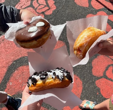 After waiting briefly in the queue to enter the store (it's a small shop so there's often a line outside, even though it took us less than a five-minute wait), we were able to order our breakfast of champions. I decided on a chocolaty Boston Cream doughnut while my travel partners got a cookies and cream and guava. The doughnuts were, in a word, delectable, and we were going to need the calories in the day ahead. I’ve found that a lot of times the famous local restaurants can be hit or miss, but this place was a hit. Not only were the doughnuts great, but the entire storefront was very well done, along with the surrounding area being a pedestrianized plaza lined with other small shops and restaurants.