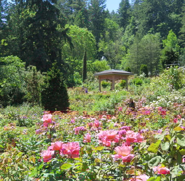 Scattered throughout the park are miles of trails and dozens of statues, plaques, and public art. Along the way to the Rose Test Garden, we passed by the Sacajawea Monument and the Oregon Holocaust Memorial. One nice thing about Washington Park is how separated it keeps pedestrians and motor traffic. There were very few crossings and places we ran into vehicles (until we accidentally hiked along a road the wrong way for 20 minutes before realizing and turning around). The layout of the park is rather confusing, and the trails we were following would suddenly take a turn in an unexpected direction. Thankfully, after a while and consulting our phones’ maps, we reached the International Rose Test Garden.