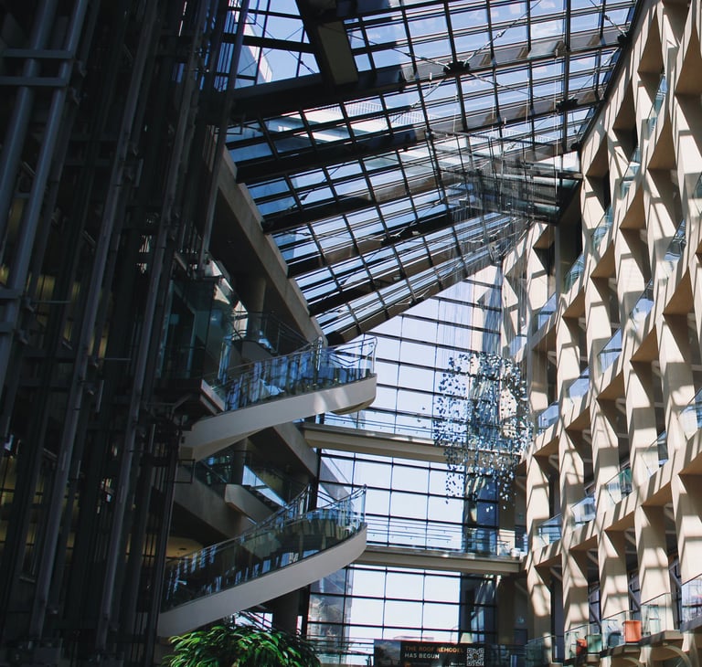 Walking south along the Trax route on Main Street, we eventually reached Washington Square, home to the City-County Building and the civic heart of the city. One important thing I noticed during my time in Salt Lake City is that the public areas of the city are looked after with a sense of pride. Parks are well-kept, and buildings are large and imposing looking. This theme extended along another block East to the Salt Lake City Public Library. I love well-designed libraries, and the one in Salt Lake is no exception. The stacks are filled to the brim with books, and there is a large atrium with several stalls inside while a glass roof and walls let in lots of natural light.